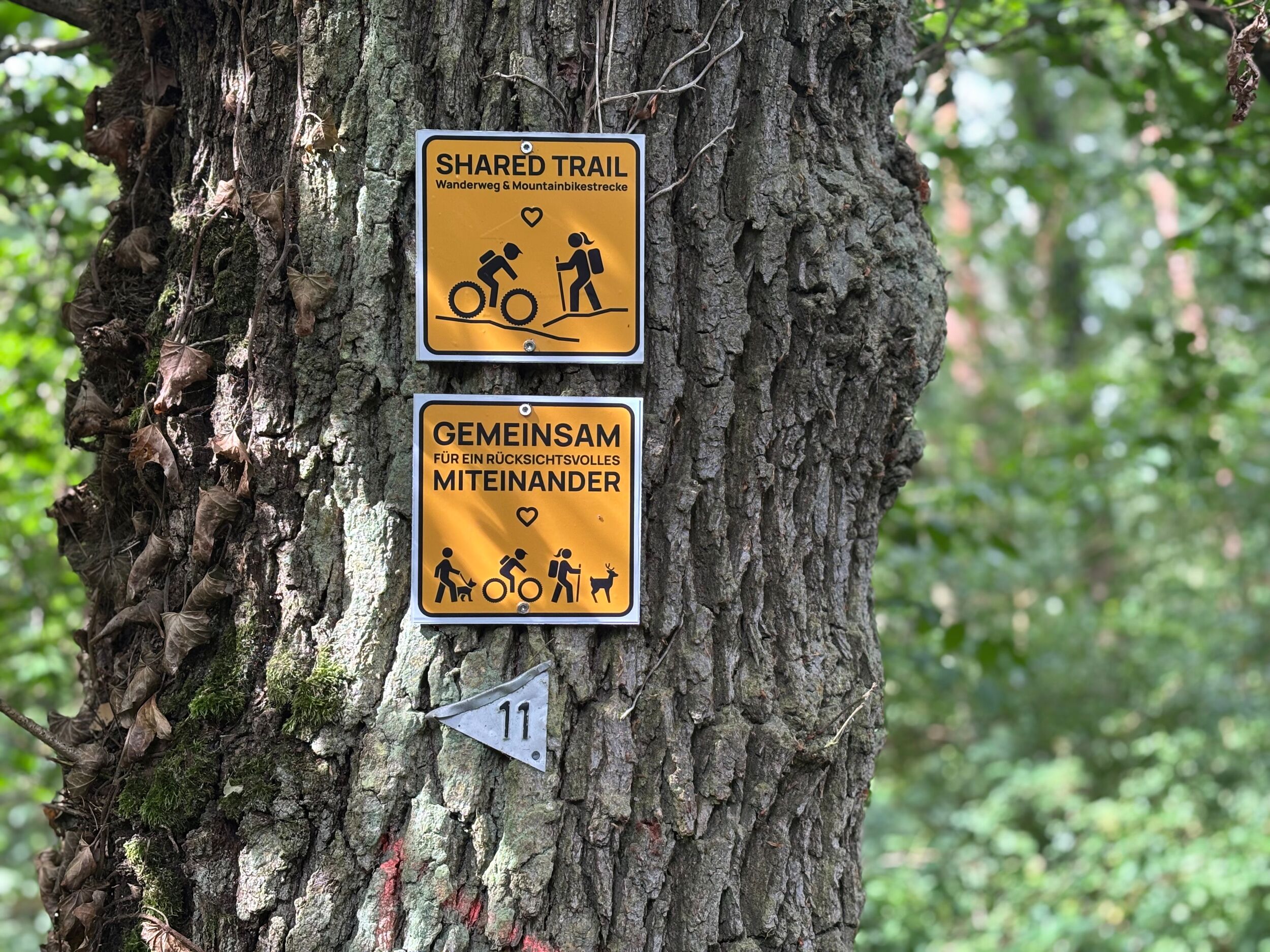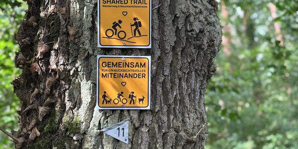Wir legen besonderen Wert auf ein rücksichtvolles Miteinander mit allen, die den Wald nutzen. Mit gesonderten Hinweisschildern wollen wir dafür sensibilisieren und alle Waldnutzenden dazu einladen, mitzuwirken. Nur so kann ein dauerhaftes und harmonisches Miteinander im Wald funktionieren.